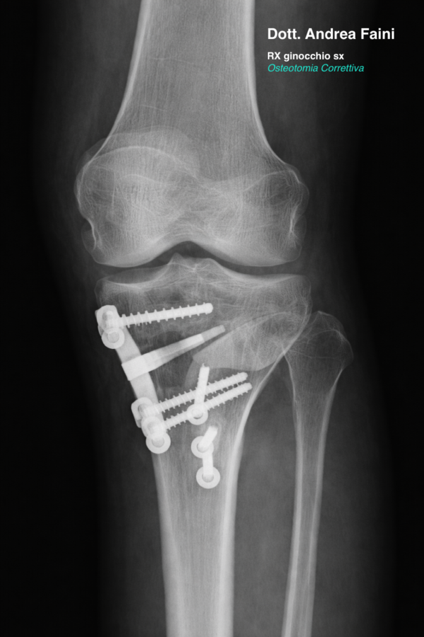 Se necessario, il difetto osseo creato può essere colmato con innesto di osso allograft (da donatore) o sintetico. Si ricorre all’osteotomia come intervento di salvataggio in alternativa o in attesa di un intervento di protesi di ginocchio, in un quadro di artrosi di ginocchio con presenza di ginocchio “varo” o “valgo”.