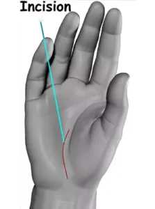 È comune avvertire sensibilità della cicatrice e dolore palmare nelle prime settimane. La maggior parte dei pazienti migliora progressivamente; la desensibilizzazione e il massaggio cicatriziale (dopo completa guarigione) possono aiutare se indicati dal chirurgo o dal terapista della mano.